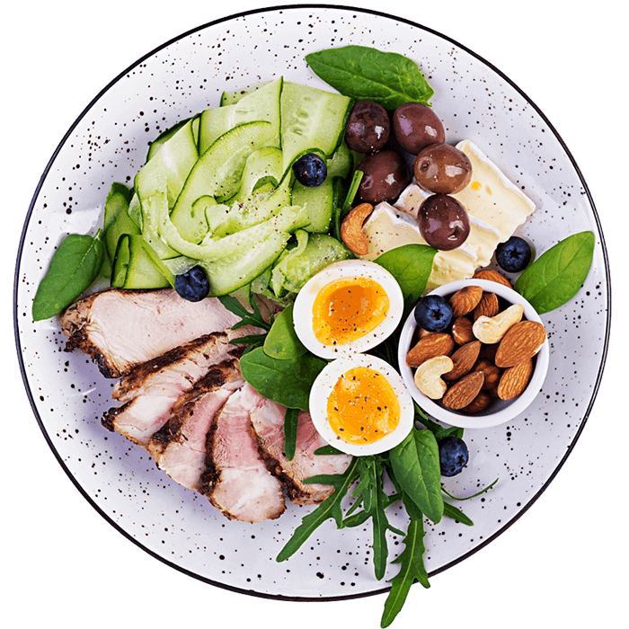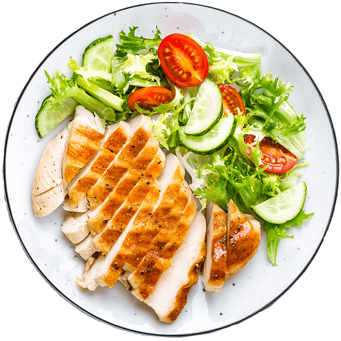 Every meal is built with macronutrients in mind — protein, carbs, good fats.